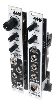 De 4ms Percussion Interface + Exp.is een veelzijdige Eurorack module die Gate en Envelope signalen genereert van audiobronnen zoals drums, percussie-instrumenten of microfoons. Met deze module heb je volledige controle over de gevoeligheid, sustain (gate lengte) en instelbare envelope decay, waardoor je jouw geluiden op unieke wijze kunt vormgeven.