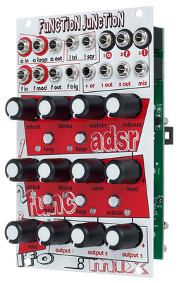 De Function Junction is uitgerust met afzonderlijke secties voor ADSR, Function Generator, LFO en Mixer, waardoor je eindeloze mogelijkheden hebt om je geluid vorm te geven. Het volledig analoge 4-traps ADSR-circuit zorgt voor nauwkeurige controle over de Attack, Decay, Sustain en Release van je geluiden.