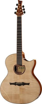 De CWG-23S Pommele Custom is voorzien van een achterblad en zijbladen van massief sapele mahonie Pommelé, met een top gemaakt van massief berenklauw-sparrenhout. De gemodificeerde geschulpte X-bracing zorgt voor een evenwichtige klank en optimale resonantie.De hals, gemaakt van een enkel stuk mahonie met matte afwerking, biedt een soepele speelervaring.