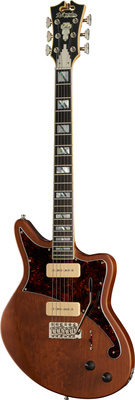 De 5-laagse tortoise pickguard in de stijl van een F-klankgat voegt een vleugje vintage flair toe, terwijl de 6-punts Wilkinson-tremolo en grover 509 Super Rotomatic stemmechanieken zorgen voor een soepele en stabiele stemming.De vernikkelde hardware en de Matte Walnut afwerking maken van deze gitaar een echt pronkstuk.