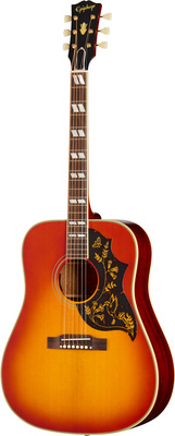 Epiphone 1960 Hummingbird Rei. HTS IBC, Steel-String Guitar with Pickup, Style: Dreadnought, Top: Solid thermally-aged spruce, Back and sides: Solid mahogany, Neck: Thermally-aged mahogany, Fingerboard: Rosewood, Mother-of-Pearl split parallelogram fingerboard inlays, Multi-ply binding on the top and back, Single-ply neck binding, Scale: 629 mm (24.8″), Nut width: 44.2 mm (1.74″), Bone nut, 20 frets, Pickup: L.R.Baggs Element VTC Bronze, “Hummingbird” pickguard, Rosewood bridge, Saddle: Compensated bone, Epiphone Deluxe machine heads, Colour: Heritage Cherry Sunburst, Includes case