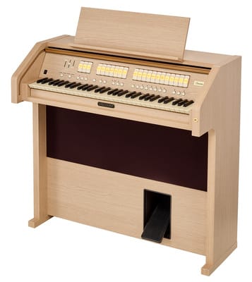 Het orgel heeft een afmeting van 94 x 98 x 46 cm en weegt 59 kg, waardoor het zowel stevig als gemakkelijk te plaatsen is in elke ruimte. De lichte eiken afwerking geeft het een tijdloze uitstraling die perfect past bij elk interieur.